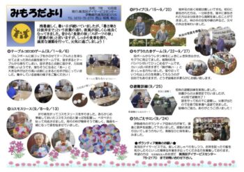 美茂呂デイサービスセンターの活動や日々の様子をまとめた「みもろだより 10月号」をホームページに掲載しました。ぜひご覧ください。