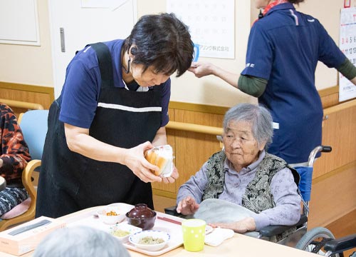 おおぎだでは4つの時間帯に分けて勤務を行なっています。利用者さんの日常に寄り添う仕事はもちろん、レクリエーションや季節のイベントの準備、改善点の提案など、より良い生活に向けて日々の業務を行なっています。